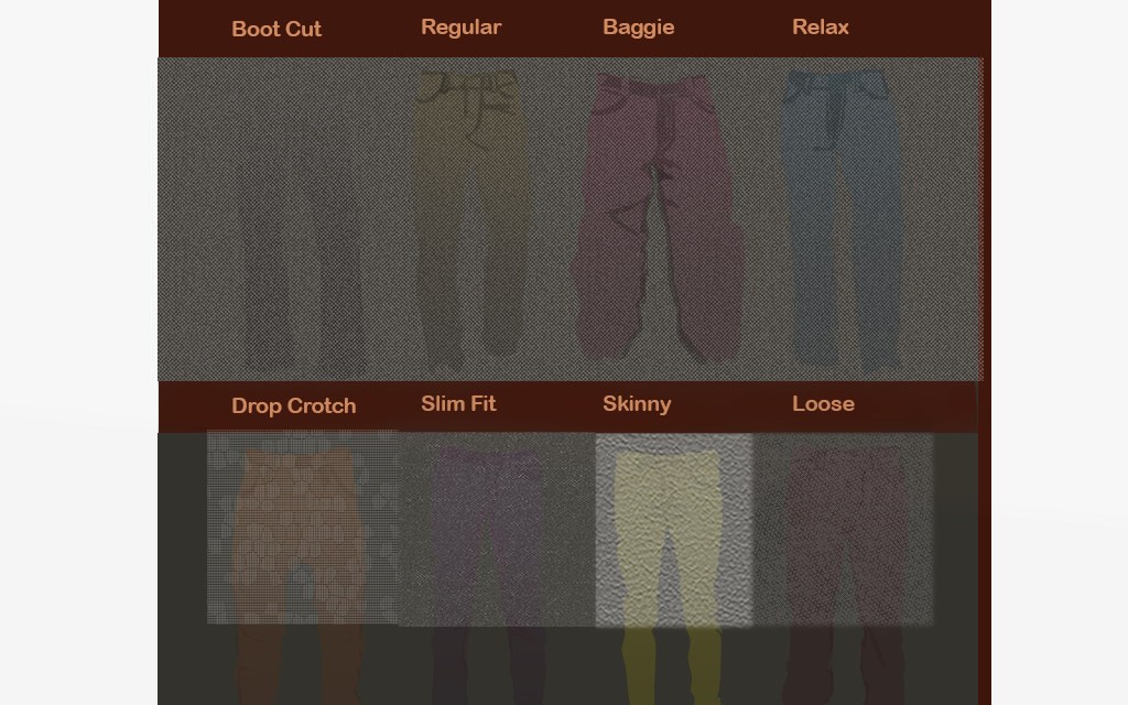 This catalogue depicts a brief collection for seasonal wear. Swatches display the products source material as well as patterns. Denimm patterns are also shown to accomodate various styles or fits. The intention behind the pattern library is to make the textiles and fittings interchangeable. That way it's forseeable for a client to be more partial to one combination over another.